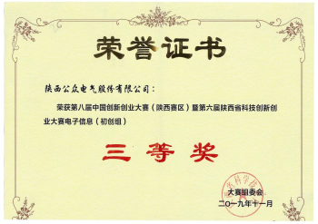 榮獲第八屆中國創(chuàng)新創(chuàng)業(yè)大賽(陜西賽區(qū))電子信息(初創(chuàng)組)三等獎(jiǎng)。